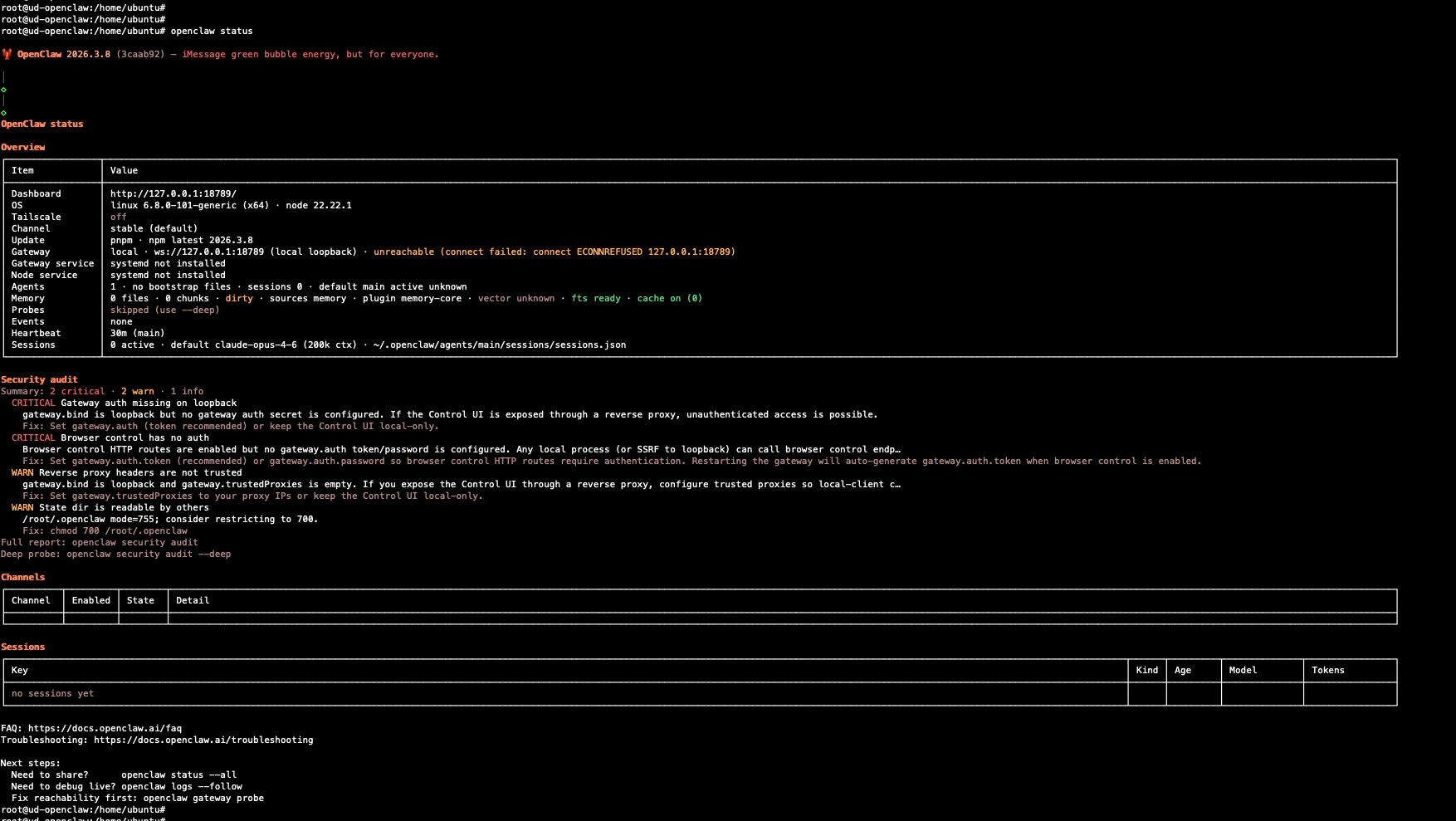 Verify that the OpenClaw gateway service is running and operational before proceeding.
