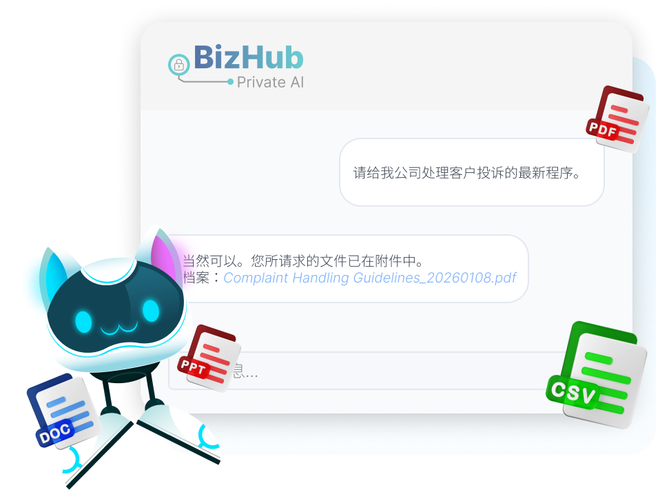 有别于公用 AI,Private AI BizHub独立可部署在企业的内部伺服器或私有云。透过高性能 GPU 基础设施,确保企业数据在绝对私有环境下进行运算及分析,绝不外泄,符合行业最高合规要求。